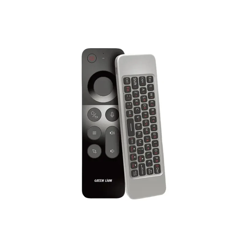مناسب برای تی‌وی باکس، پروژکتور، کامپیوتر،تلویزیون و موبایل دارای میکروفون، استفاده بعنوان دستیار صوتی قابلیت ست کردن با کنترل اصلی تلویزیون حرکت ژیروسکوپی درست مشابه موس حالت اتصال: بی‌سیم 2.4G ریموت کنترل گرین لاین مدل 4-in-1 یک دستگاه ترکیبیه که شامل ایرماوس (Air Mouse)، کیبورد بی‌سیم، کنترل مادون قرمز (IR Remote) و کنترل صوتی (Voice Control) هست. این مدل با طراحی ارگونومیک، دقت بالا و سازگاری گسترده، انتخابی عالی برای کاربران خانگی و حرفه‌ای محسوب می‌شه.