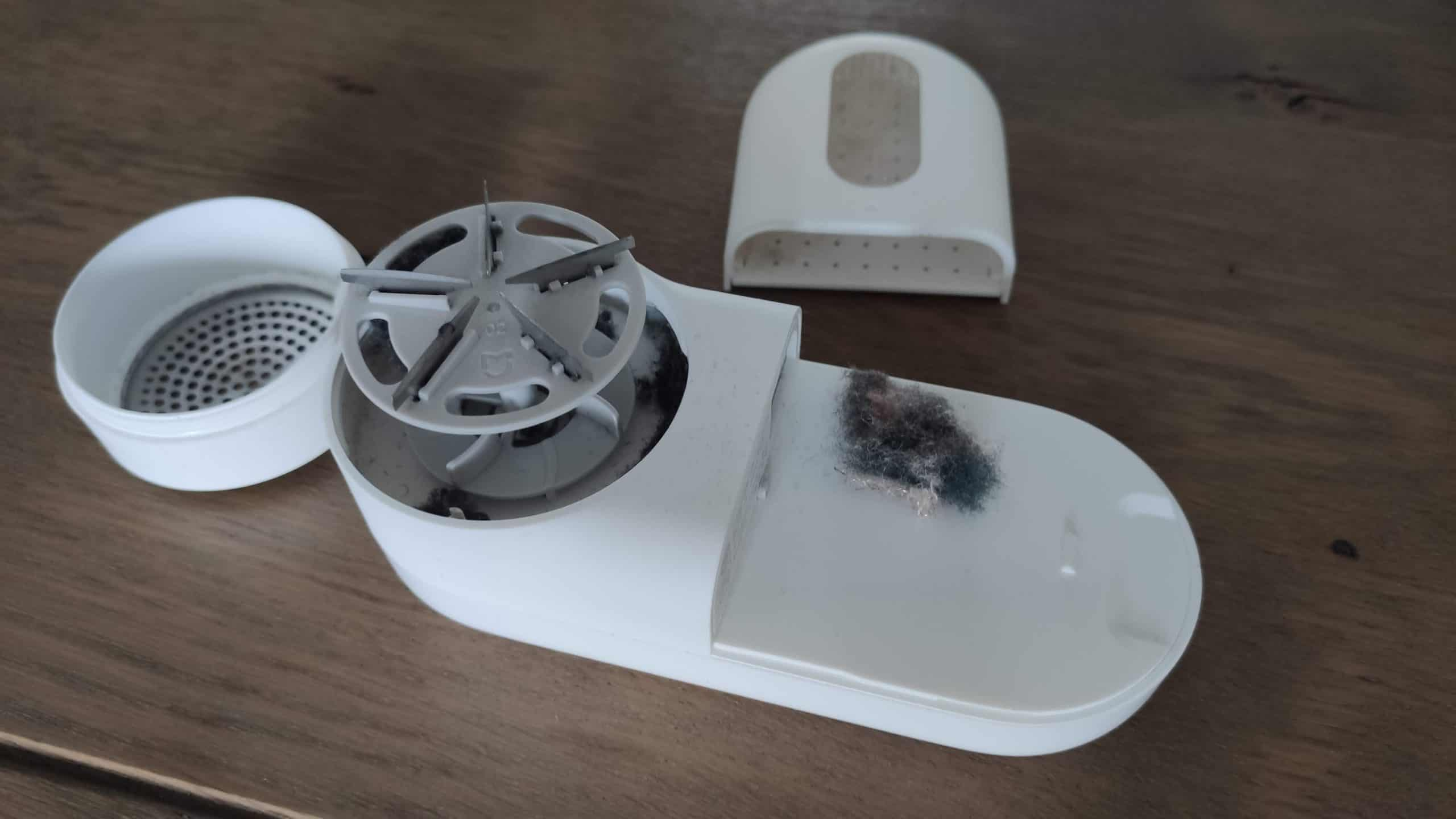 سطحی که روی لباس شما قرار میگیرد از یک لایه محافظ به ضخامت 35/0 میلی متر میباشد که از آسیب زدن تیغه ها به لباس جلوگیری شود و لباس شما هیچ آسیبی توسط این تیغه ها نبیند. اما در عین حال تیغه ها به قدری قوی هستند که سبب پرزگیری لباس های شما میشوند. روی سطح فلزی این محصول سوراخ هایی در ابعاد مختلف ایجاد شده است که پرزهای کوچک و بزرگ را به راحتی جمع آوری میکند. شایان به ذکر است که تیغه های تعبیه شده در این دستگاه از جنس استیل بوده و ضدزنگ میباشد و جداکردن آن ها به شدت راحت میباشد. یک موتور مکنده پرزهای لباس را از داخل سوراخ های سطح فلزی به داخل پرزگیر شیائومی می‌کشد و همین امر سبب جذب بهتر و پرقدرت تر پارچه های شما میگردد. لازم به ذکر است که میتوانید این محصول منحصر به فرد را برای پارچه هایی اعم از مخمل، ابریشم و ... با توجه به ساختار پارچه خود استفاده نماید.دستگاه دارای یک محفظه شیشه ای برای جمع آوری پرز ها است.